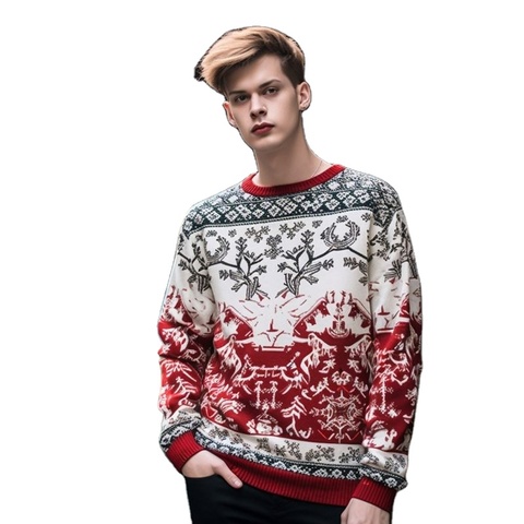 도매 남여 Crewneck 순록 눈송이 풀오버 크리스마스 스웨터
