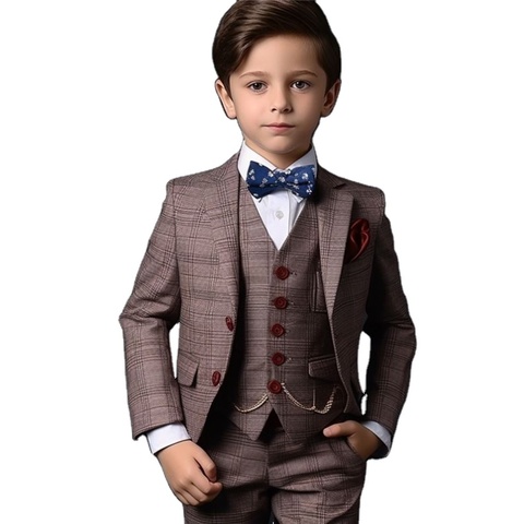 맞춤형 의류 소년 정장 결혼식 파티 키즈 격자 무늬 블레이저 조끼 바지 정장 아동 턱시도 무도회 공연 의상